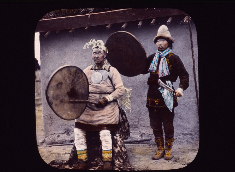 Một pháp sư người Goldi ở Trung Quốc và người trợ lý của ông ta. Những người Goldi còn được gọi là người Nanai, họ sống ở khu vực biên giới Trung Quốc và Nga.