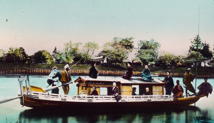 Một gia đình được cho là người Nhật Bản trên thuyền của họ. Ảnh chụp năm 1895.