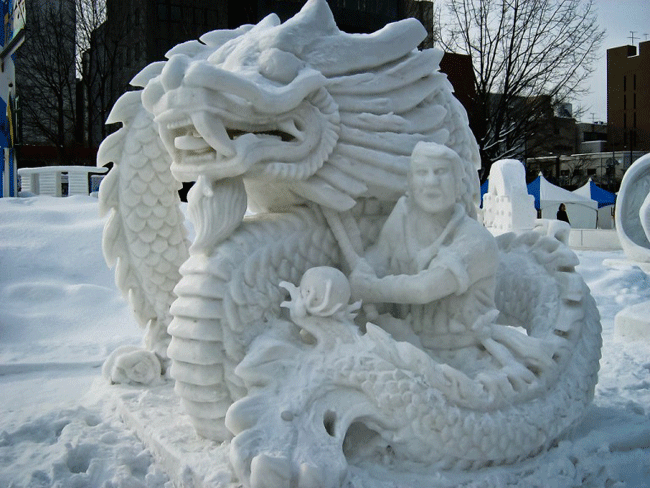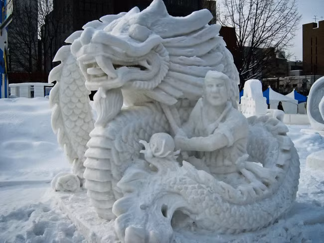 Tuy nhiên, điểm nổi bật của lễ hội Tuyết chính là các tác phẩm điêu khắc tuyết. Các đội đại diện cho các quốc gia trên thế giới cùng nhau thi đấu, tạo ra những tác phẩm nghệ thuật khổng lồ bằng tuyết.