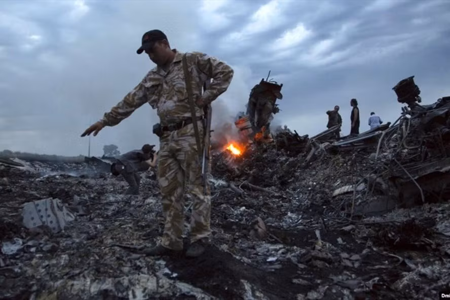 Hiện trường vụ bắn rơi MH17 ở Donetsk năm 2014. Ảnh: AP