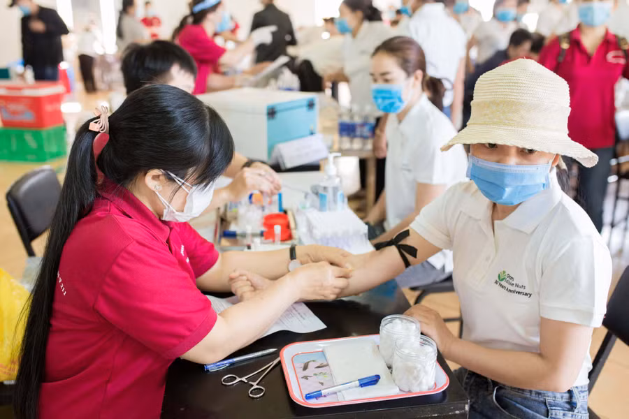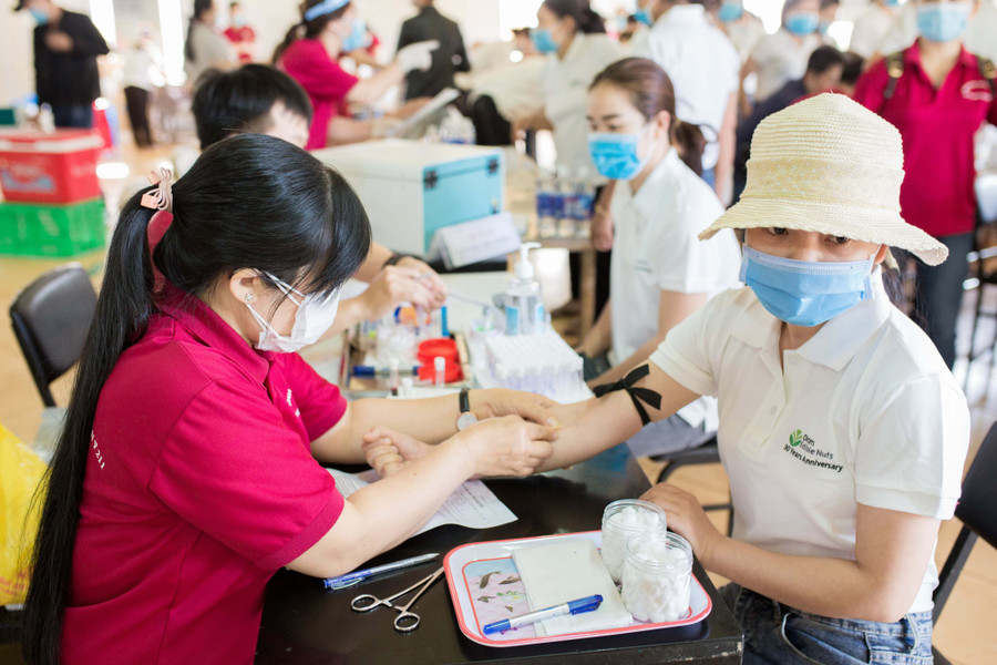 Cán bộ, công nhân Công ty TNHH Olam Gia Lai tham gia hiến máu. Ảnh: Hoàng Ngọc