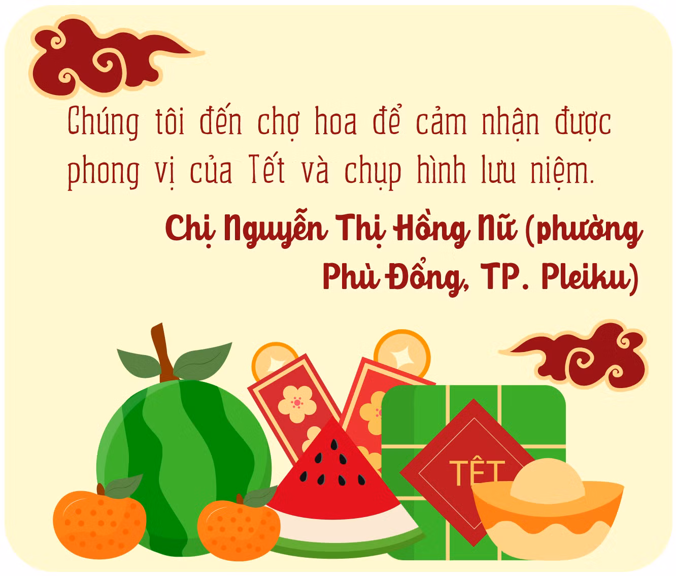 Tại địa điểm bán hoa, cây cảnh trên đường Nguyễn Văn Cừ, anh Đinh Bá Cường (phường Diên Hồng, TP. Pleiku) bộc bạch: “Mấy năm trước, tôi bán nhiều loại hoa khác nhau. Năm nay, tôi mua 150 chậu cúc từ nhà vườn ở phường Thắng Lợi về bán với giá 500-800 ngàn đồng/chậu. Sau 5 ngày, tôi đã bán được 50 chậu. Tôi hy vọng các ngày còn lại sức mua tăng để bán hết hàng”.