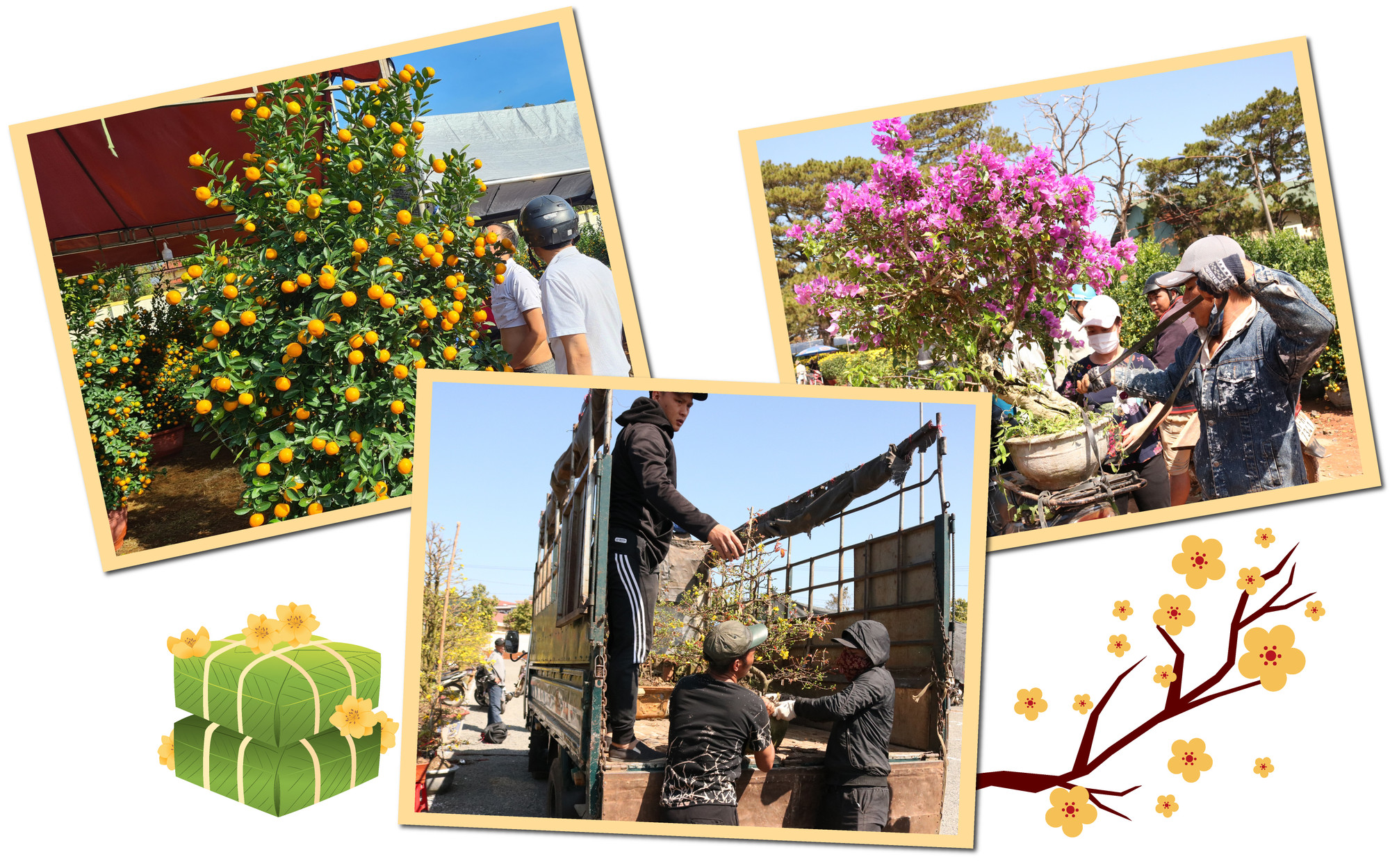 Sau khi chợ hoa bắt đầu hoạt động, hàng ngàn chậu hoa, cây cảnh từ cả nước được đưa về bày bán tại 3 địa điểm trên giúp Phố núi rộn ràng sắc xuân.