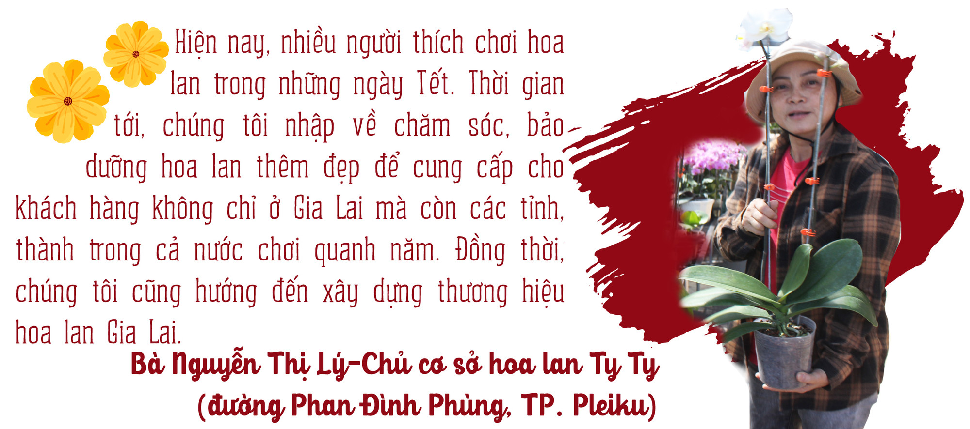 Theo bà Nguyễn Thị Lý-Chủ cơ sở hoa lan Ty Ty: Cơ sở nhập về đa phần là lan hồ điệp Đài Loan. Đến nay, cơ sở đã bán hơn 200 ngàn cây cho khách hàng tại Gia Lai, Kon Tum, Đà Nẵng, TP. Hồ Chí Minh...