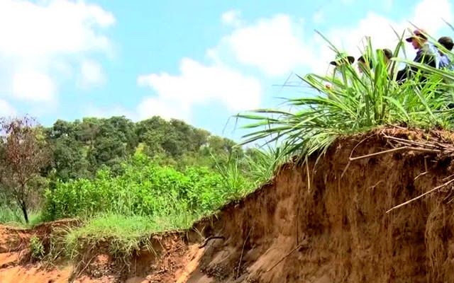 Người dân xã Nam Cát Tiên lo lắng khi đất nông nghiệp đang bị sạt lở xuống sông. Ảnh: Minh Thanh