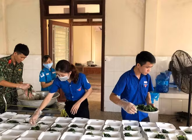 Có sự tham gia của đội ngũ áo xanh thanh niên tình nguyện, các chiến sĩ trẻ tại bếp ăn Trường Quân sự tỉnh Thừa Thiên- Huế, cũng được san sẻ vơi bớt phần nặng nhọc trong những ngày căng mình chống dịch Covid-19 hiện nay