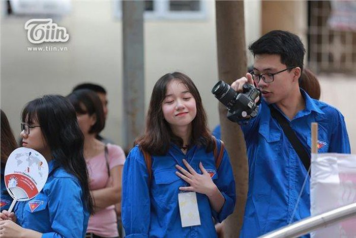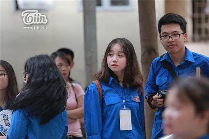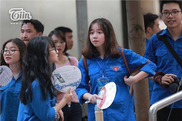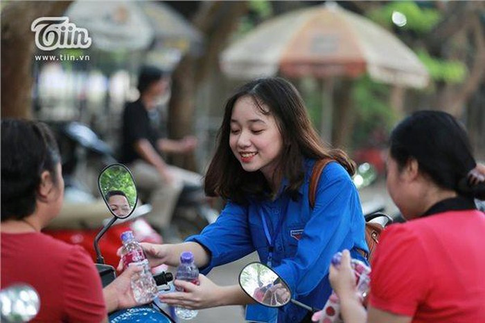 Một trong những nữ tình nguyện nhỏ tuổi nhất tại điểm thi THPT Nguyễn Tất Thành (Đại học Sư phạm) đã vô tình lọt vào ống kính máy quay và thu hút nhiều sự chú ý bởi vẻ ngoài xinh đẹp nổi bật.