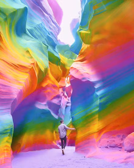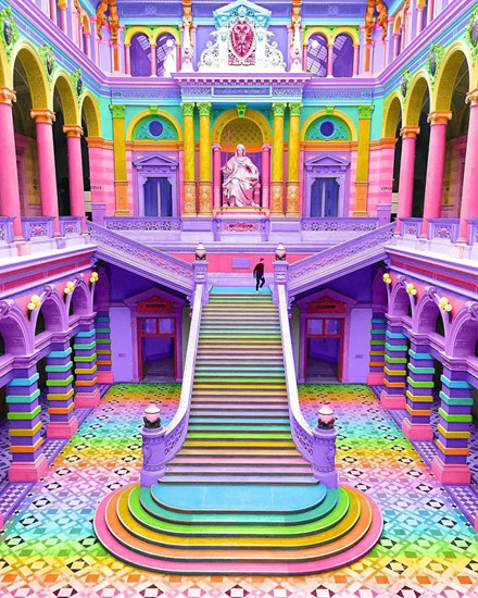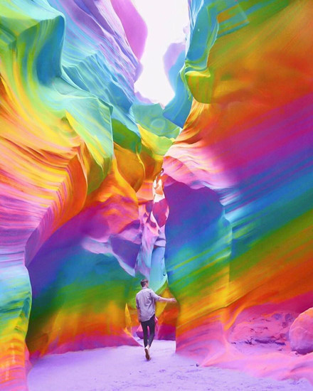 Một nhà nhiếp ảnh - thiết kế ở New York đã nghĩ ra cách sáng tạo độc đáo, không đụng hàng khi tô bảy sắc cầu vồng rực rỡ cho mọi thứ, từ hoang mạc, những con đường dài hun hút, những cây cầu lẻ loi… khiến người xem thích thú và trầm trồ.