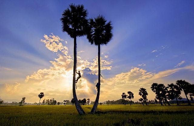 Khung cảnh hoàng hôn rất nên thơ ở miền Tây Nam Bộ.