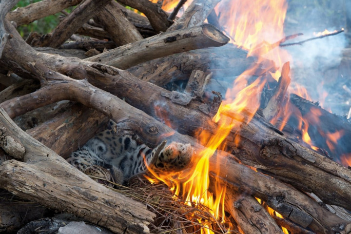 Lễ hỏa táng không chỉ dành riêng cho con người ở Ấn Độ. Xác của con báo này được hỏa táng không phải chỉ để ngăn chặn bộ lông của nó rơi vào tay những kẻ buôn bán động vật hoang dã mà còn là để bày tỏ lòng tôn kính đối với loài vậy này, đặc biệt khi niềm tin vào kiếp luân hồi vẫn còn phổ biến trên khắp Ấn Độ.