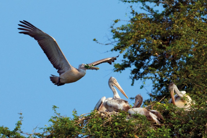 Chim bồ nông làm tổ trên những cây lớn trong khu bảo tồn chim Ranganathittu ở Karnataka.