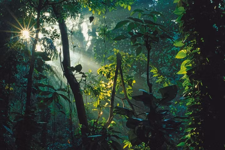 Nắng sớm xuyên qua tán lá của một khu rừng rậm ở Ấn Độ.