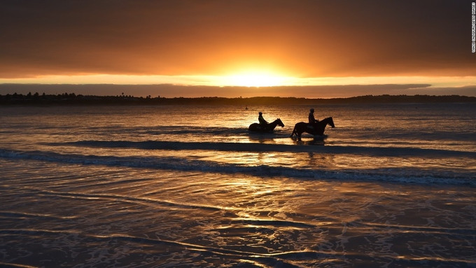 Những người cưỡi ngựa trên bãi biển vịnh Lady đang tập luyện cho Lễ hội carnival diễn ra từ đầu tháng 5 của thành phố Warrrnambool, Australia.