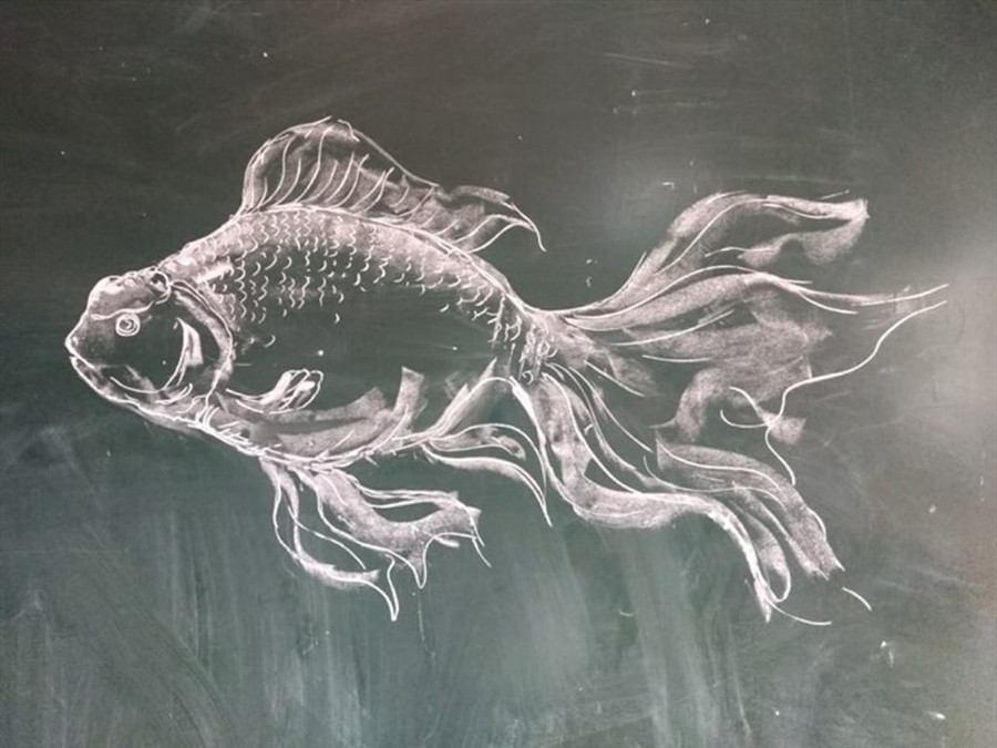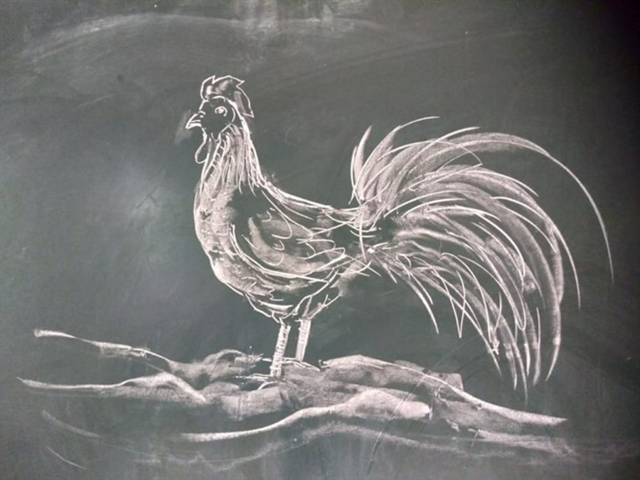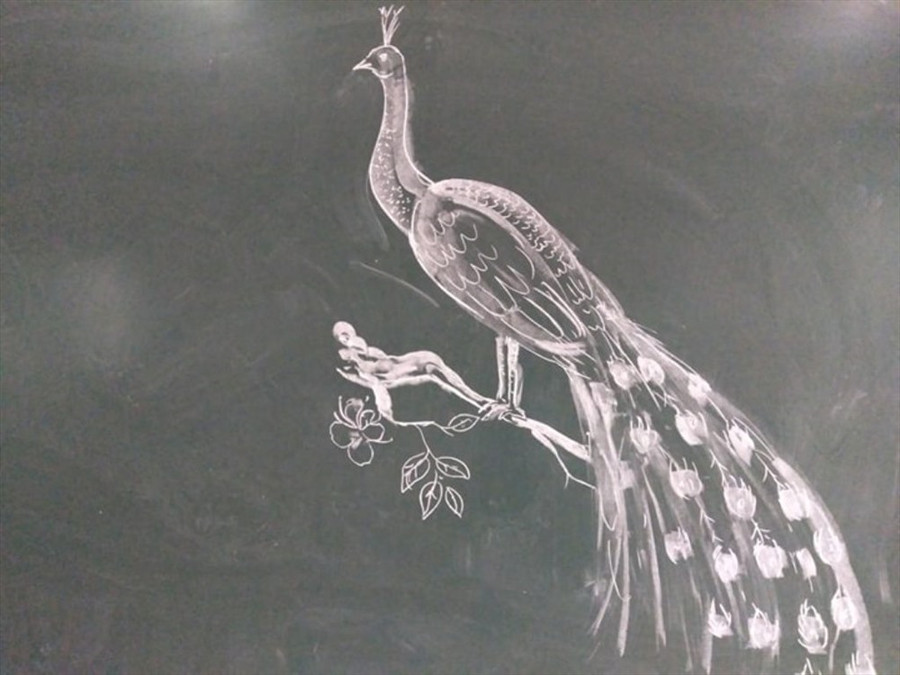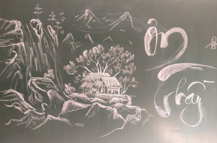 Những bức tranh thầy Hùng vẽ bằng phấn trên bảng.