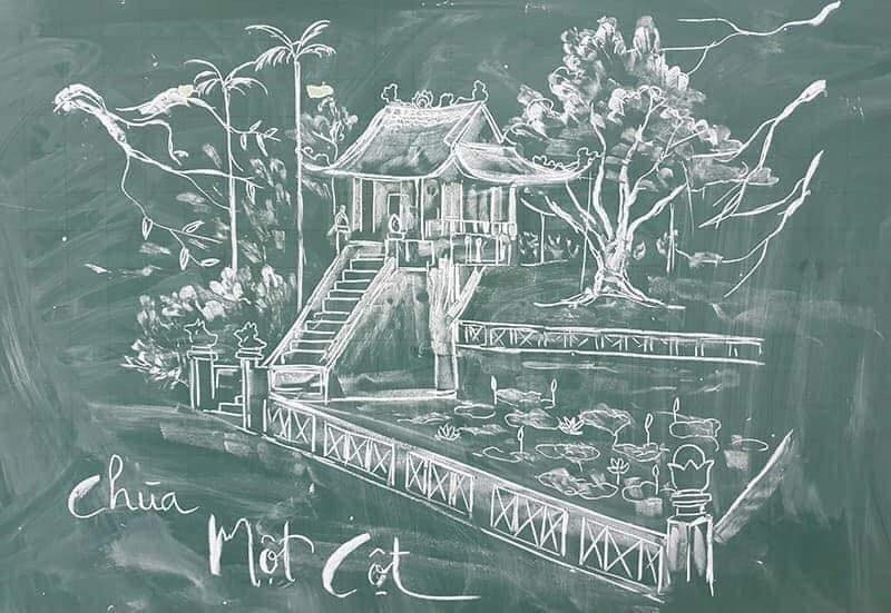Cũng theo thầy Hùng, sau câu trả lời khá trăn trở của các học trò, vào mỗi tiết học, thầy quyết định dùng phấn trắng, vẽ lên bảng những bức tranh về các danh thắng của đất nước, những con vật thân thuộc và cả những bức họa cổ động, biếm họa về cuộc sống.
