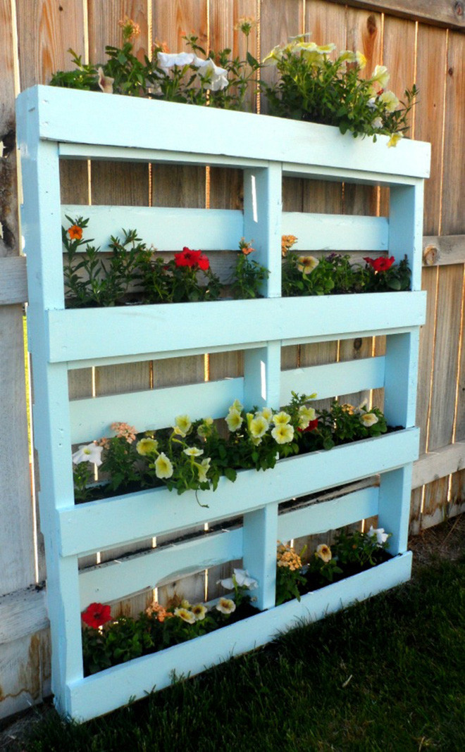 Tất nhiên, bạn không phải nhất định tìm mảnh gỗ đã bị bào mòn theo thời gian nếu bạn thích thứ gì đó bóng bẩy và màu sắc. Bạn có thể sơn những thanh gỗ palllet theo bất kỳ màu nào mà bạn muốn, tùy thuộc vào bề ngoài mà bạn muốn chúng đạt được. Khi hoàn thành phần này, bạn có thể chú ý đến những phần còn lại như bỏ đất vào chậu...