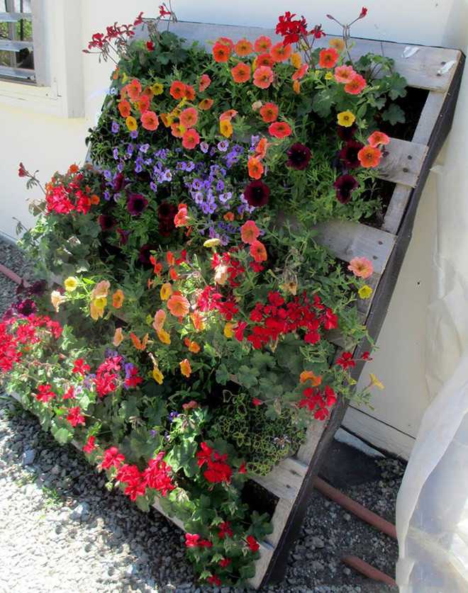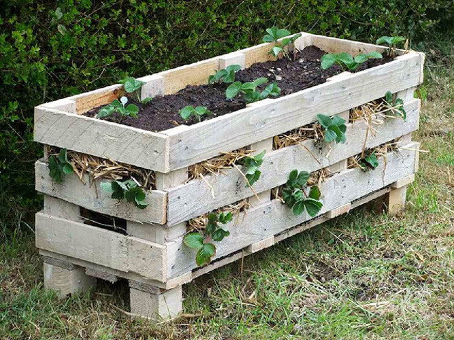 Bạn có thể biến gỗ pallet thành bất kỳ thứ gì xinh đẹp, và những chậu cây hay những bệ đặt cây chính là những sự chuyển biến đơn giản nhất. Nếu bạn muốn có một chiếc thùng gỗ chứa những chậu cây nhỏ thì điều bạn cần làm chỉ đơn giản là ghép chúng lại giống như những chiếc thùng để vận chuyển hoa quả.