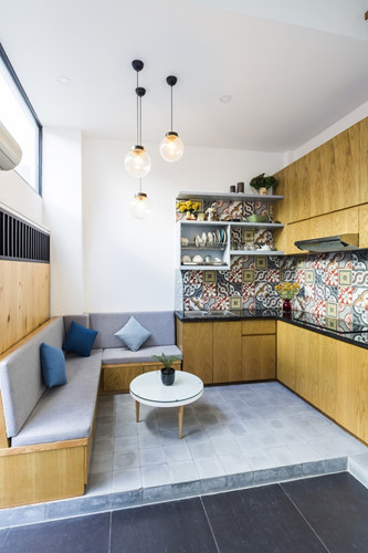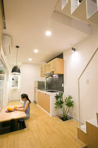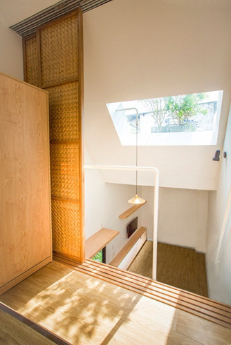 Dù nằm trong khu vực dân cư đông đúc nhưng nhờ được thiết kế thông minh và khéo léo, ngôi nhà vẫn lấy được đủ ánh sáng và gió tự nhiên nên rất thoáng đãng.