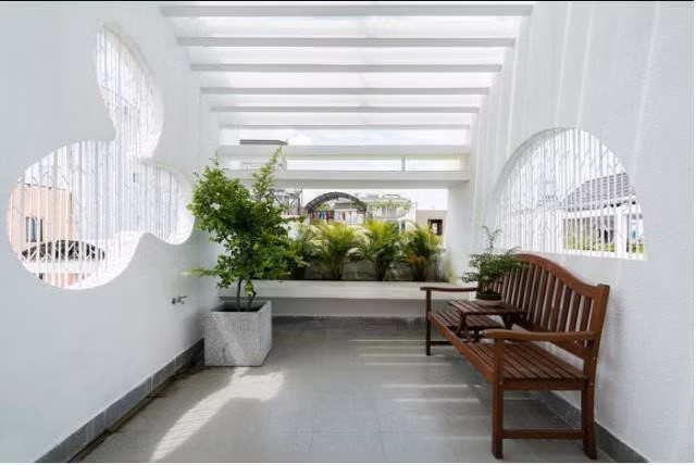 Dù chỉ rộng 40m2 nhưng chủ nhà vẫn dành cả một không gian rộng rãi để vui chơi, nghỉ ngơi với rất nhiều cây xanh.