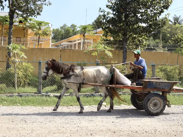 "Cha tôi mần xe ngựa từ lúc trẻ, thấy người ta mần nên mần theo. Lúc đầu nuôi một con, được hơn chục năm thì nó yếu nên bán để mua lại con khác. Nó là con hiện giờ nè, coi vậy chớ kéo khỏe lắm. Cha mất, tui chuyển qua nghề này tới giờ luôn" - anh Tha kể cơ duyên vào nghề mưu sinh sau lưng sức ngựa.