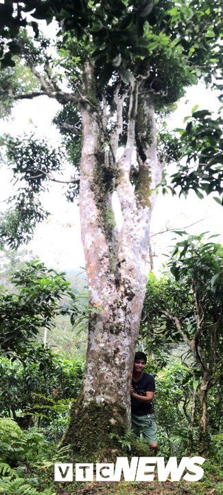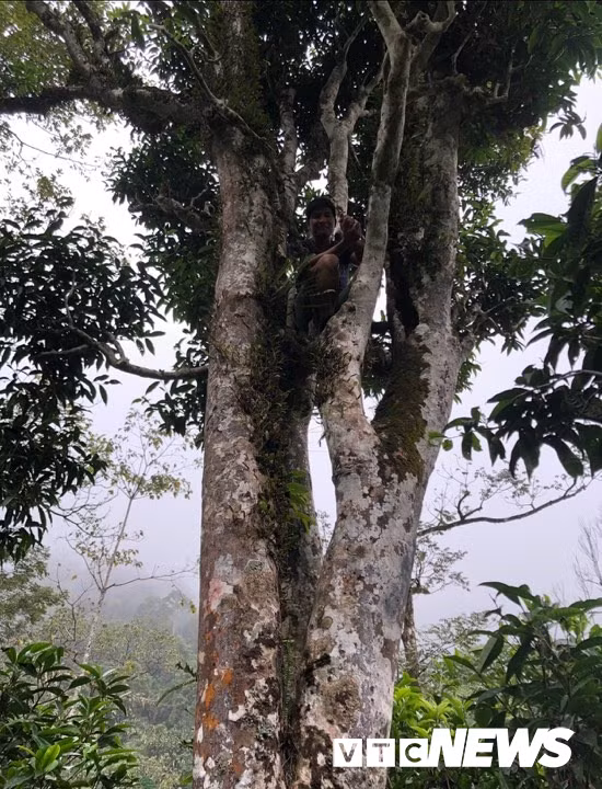 Cây chè rừng cổ thụ to đến nỗi người trèo lên ngọn nhìn bé xíu.