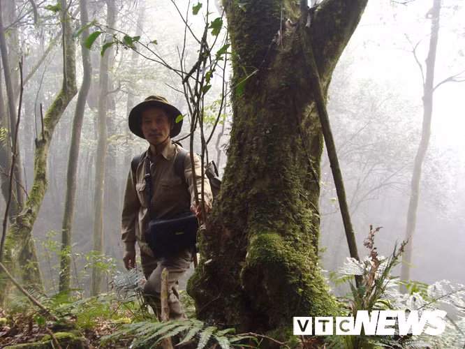 Tác giả bên một cây chè rừng ở độ cao gần 2.300m trên dãy Hoàng Liên Sơn phía Phong Thổ, Lai Châu.