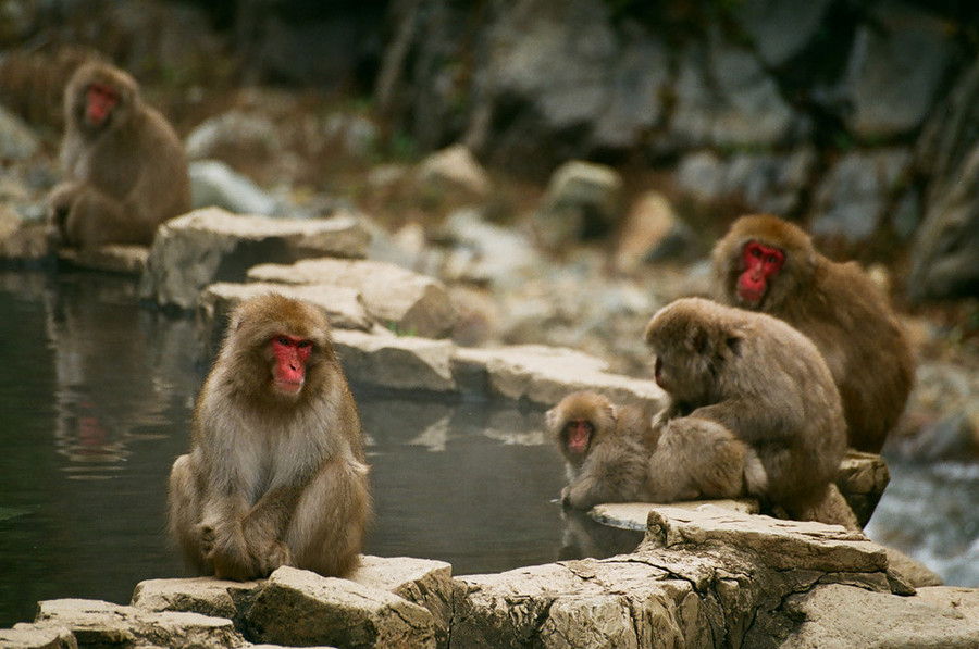 Công viên khỉ Jigokudani (Nagano): Nằm tại Nagaso, công viên Jigokudani là điểm thu hút khách du lịch nước ngoài bởi khung cảnh những con khỉ mặt đỏ thư giãn bên suối nước nóng trong mùa đông lạnh. Công viên có khoảng hơn 200 con khỉ vẹt, loài khi mặt đỏ quý hiếm. Bao quanh những khu suối nước nóng, nơi bầy khỉ tắm onsen là các ngọn núi được bao phủ bởi băng tuyết. Những con khỉ ở đây thoải mái, vô tư tắm suối, thư giãn như con người mà không hề quan tâm đến sự xuất hiện của các vị khách du lịch hiếu kỳ. Ảnh: Bryan.