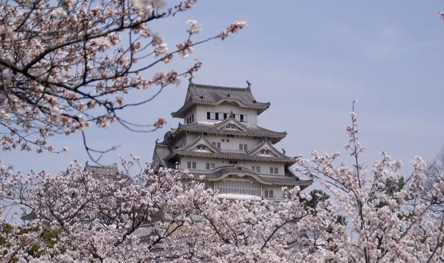 Lâu đài Himeji (Hyogo): Tòa lâu đài trắng tọa tại Hyogo là một trong những địa điểm hút khách du lịch bởi kiến trúc độc đáo. Toàn cảnh lâu đài được thiết kế với cảm hứng hình ảnh con chim bay trên bầu trời. Himeji là sự kết hợp của 83 tòa nhà nhỏ. Lâu đài thế kỷ 17 được trang bị hệ thống phòng thủ chắc chắn. Lâu đài từng xuất hiện trong rất nhiều bộ phim nổi tiếng Nhật Bản và thế giới như siêu phẩm James Bond: You only live twice. Ảnh: Kenichi Masuo.