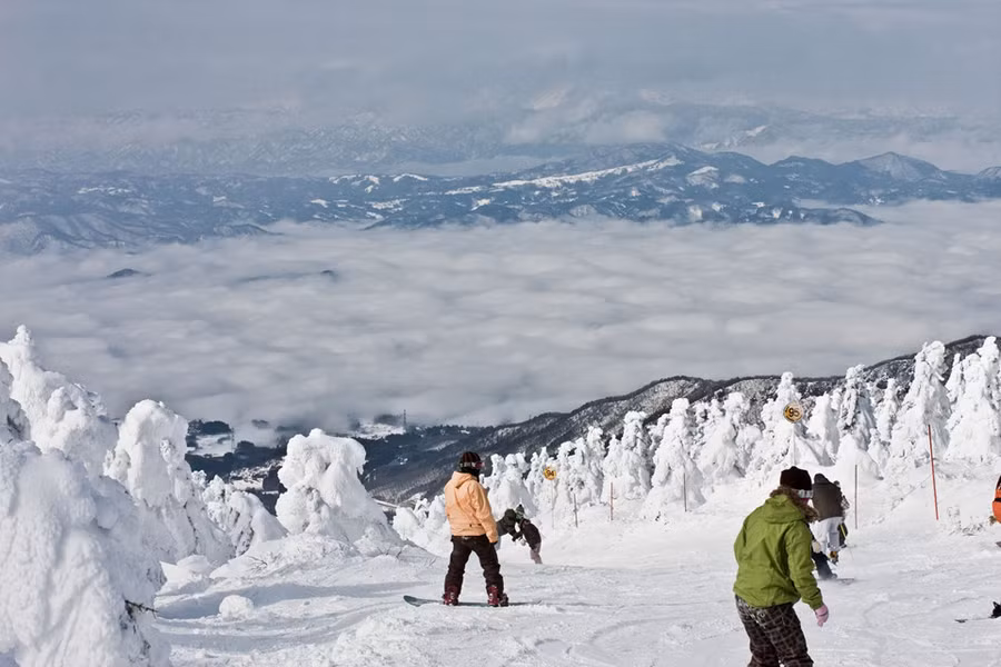 Khu trượt tuyết Zao (Yamagata): Với 15 đoạn dốc và 12 trường đua, Zao Onsen là một trong những khu trượt tuyết nổi tiếng nhất Nhật Bản. Du khách tới đây không những có thể tham gia môn thể thao hấp dẫn trong mùa đông mà còn được ngắm Juhyo - quái vật băng, tạo thành do các trận tuyết mạnh phủ kín cây cối làm nên hình tháp tuyết khổng lồ như những con quái vật. Ảnh: Konstantin.