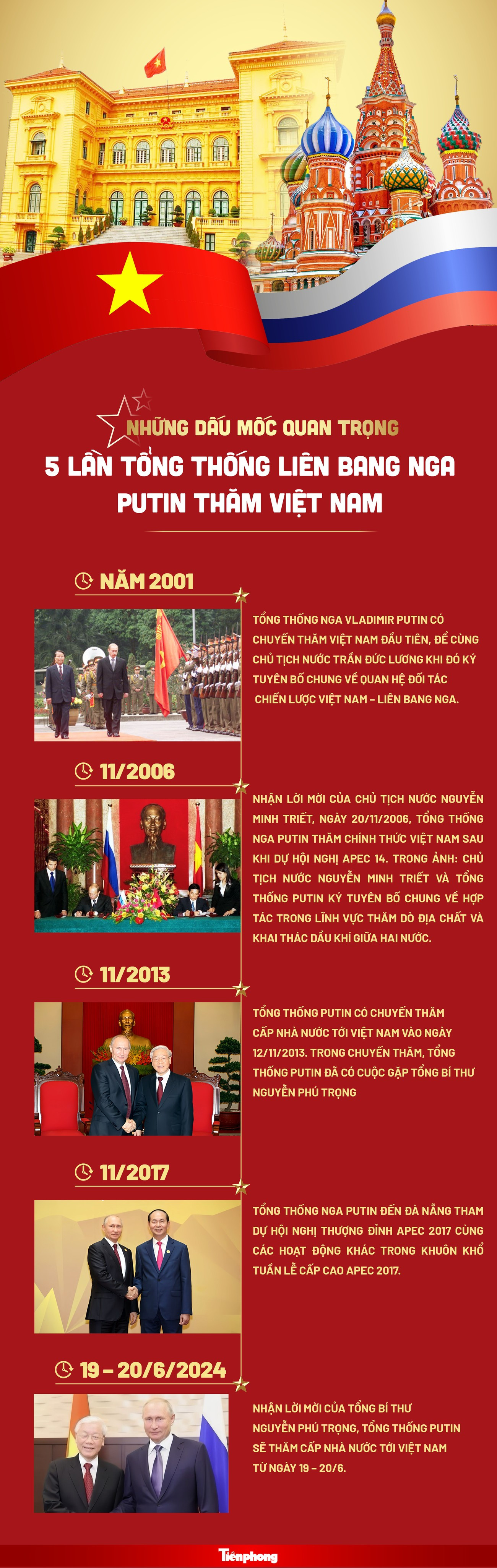 Infographic Những dấu mốc quan trọng trong 5 lần Tổng thống Liên bang Nga Putin thăm Việt Nam