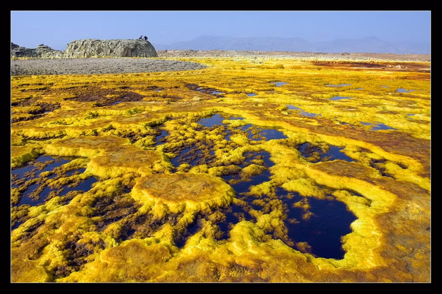 Dallol Volcano nằm ở sa mạc Danokil, Đông Bắc của Ethiopia, là một trong những địa điểm nóng nhất trên Trái đất với nhiệt độ trung bình ở mức 35 độ C. Sự kết hợp của suối nước nóng có chứa axit, lưu huỳnh, magma, muối tạo nên khung cảnh màu vàng cam lạ mắt. Đây là khu vực nguy hiểm vì chứa nhiều khói độc, an ninh không được đảm bảo, giao thông khó khăn nhưng mỗi năm vẫn có hàng nghìn du khách đến thăm.