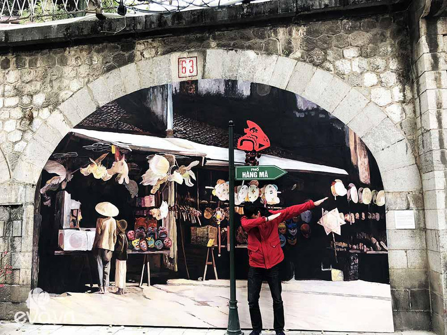Với background đa dạng, các bạn có thể chụp hàng nghìn kiểu ảnh khi tới đây. Những bức tranh tường cũng mang đậm không khí xuân của Hà Nội xưa, càng khiến nơi này trở thành một địa điểm chụp ảnh mới và "hot" nhất dịp Tết 2018.