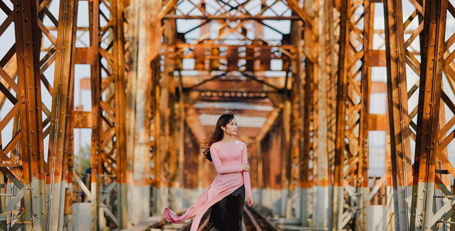 Tưởng như là một địa điểm quá quen thuộc rồi nhưng cầu Long Biên vẫn được nhiều bạn trẻ ưu ái lựa chọn làm background cho ảnh Tết. Nơi đây mang nét hoài niệm, cũ kỹ mà không nơi nào có được.