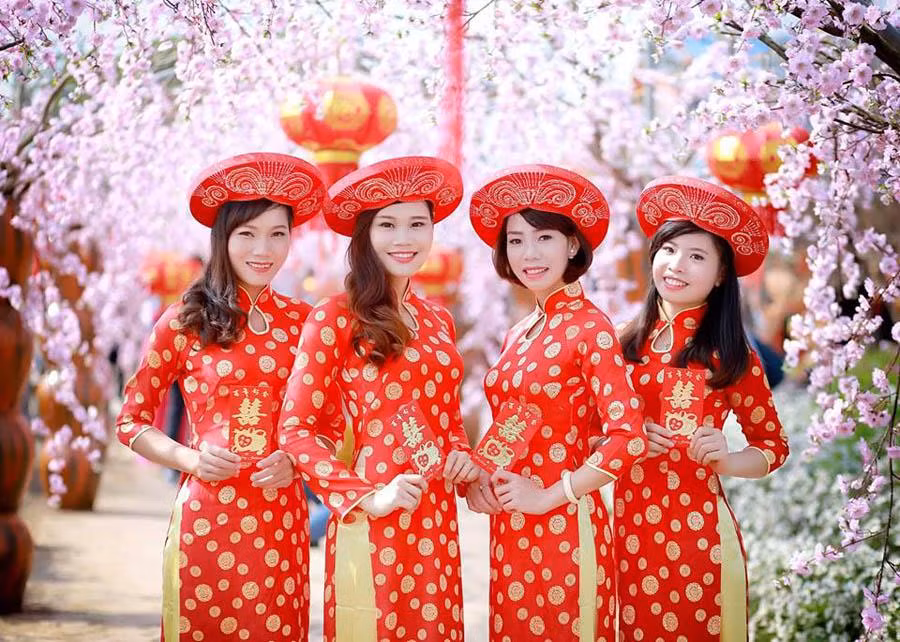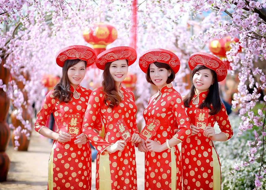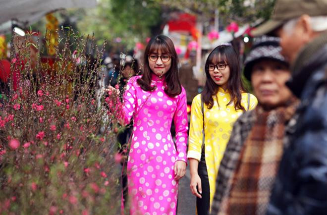 Với vài đạo cụ như phong bao lì xì, một cành đào nhỏ xinh,... với trang phục áo dài đỏ, các bạn gái trở nên thật xinh đẹp và tràn đầy sức sống trong những bức hình. Từ phố Hàng Mã, các bạn còn có thể tranh thủ chụp ảnh ở chợ hoa Hàng Lược ngay gần đó, cũng đẹp không kém gì vườn đào Nhật Tân hay thung lũng hoa đâu!