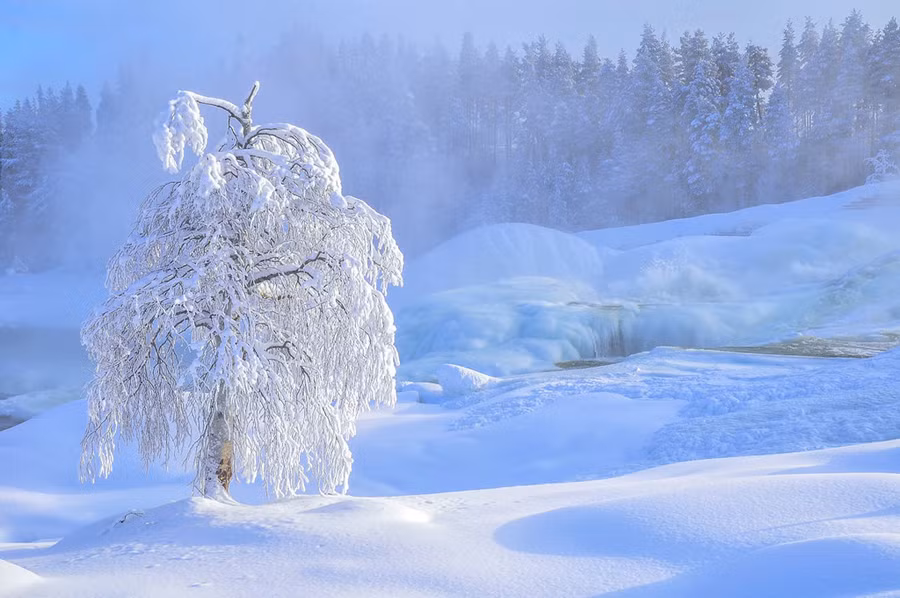 Thác Storforsen trên sông Pite (Bắc Thụy Điển) đóng băng vào mùa đông.