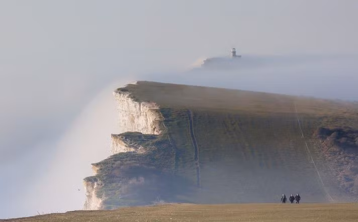 Vách đá khổng lồ của vùng Beachy Head (East Sussex, Anh) trong sương sớm.