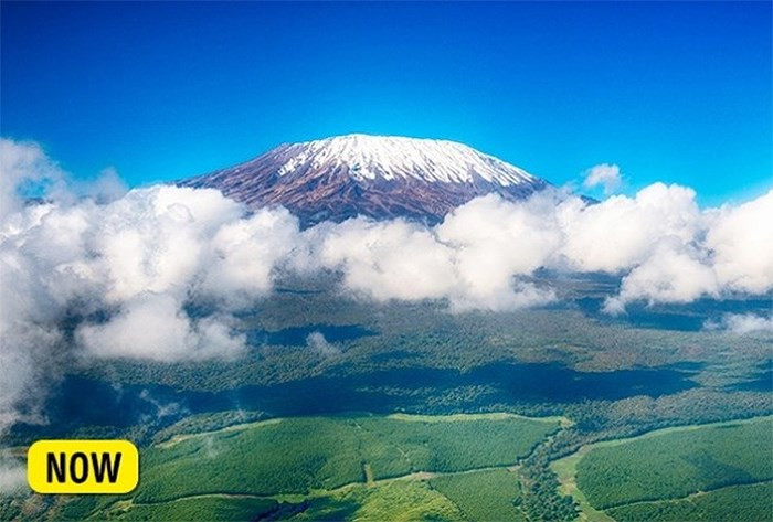 Núi Kilimanjaro là điểm cao nhất ở châu Phi, và nó được bao phủ bởi tuyết. Tuy nhiên, trong 100 năm qua, tuyết đã bắt đầu tan chảy nhanh chóng và lượng mưa không thể bù đắp cho quá trình này. Các nhà khoa học dự đoán rằng tuyết sẽ biến mất vào năm 2033, và núi lửa sẽ mất hoàn toàn diện mạo hiện tại của nó.