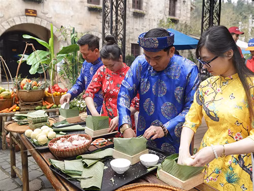 Không khí Tết đã tràn về Sun World Ba Na Hills từ ngày 26-27 Tết với hoạt động gói bánh chưng truyền thống ấm cúng và rộn ràng trên đỉnh Bà Nà muôn hoa rực rỡ.