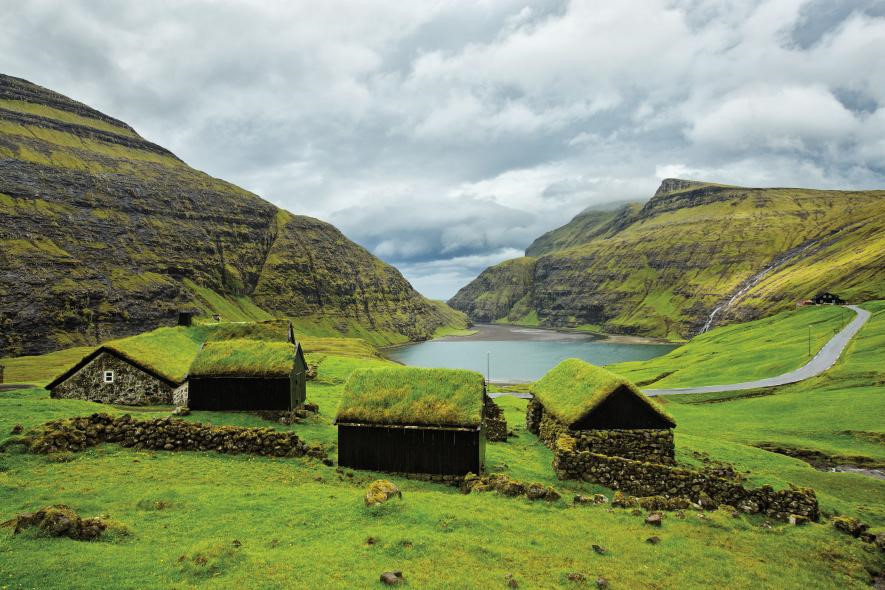 Quần đảo Faroe, Đan Mạch: Hòn đảo Sterymoy, một trong 18 đảo tạo nên quần đảo Faroe xa xôi, nằm ngoài khơi cách bờ biển Scotland khoảng 300 km. Điểm đặc biệt trên hòn đảo này chính là những ngôi nhà có mái che phủ hoàn toàn bằng cỏ xanh.