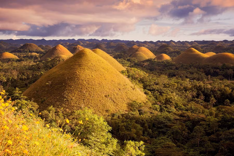 Đồi Chocolate ở đảo Bohol, Philppines: Những ngọn đồi Chocolate có hình chóp nón ở đảo Bohol, Philppines là một bí ẩn do thiên nhiên tạo nên. Ước tính khoảng 1.776 ngọn đồi đá vôi được bao phủ bởi thảm cỏ xanh tại hòn đảo này.