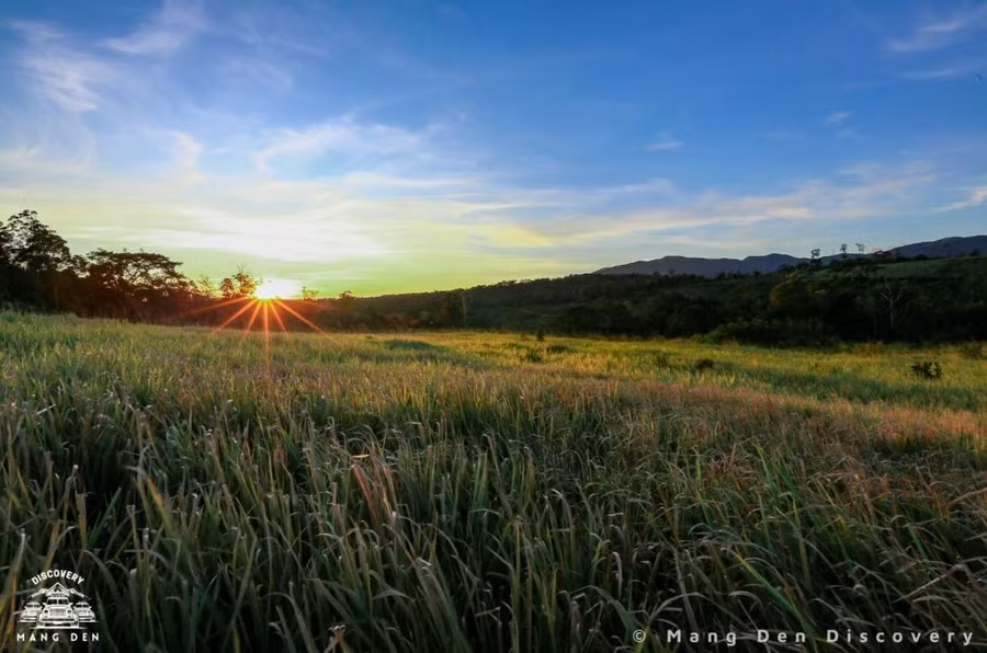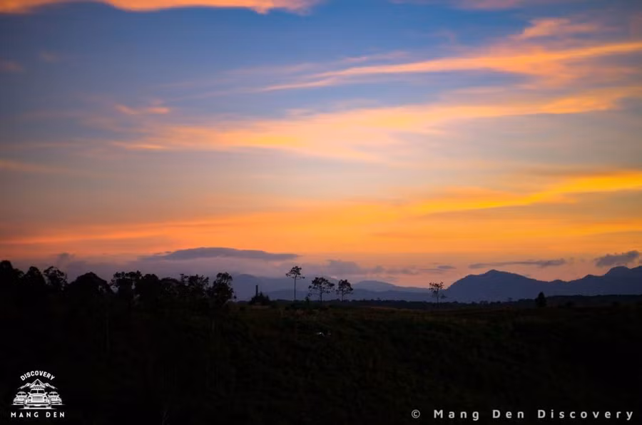 Theo chia sẻ của người dân địa phương, vì thời tiết Măng Đen quanh năm mát mẻ, với địa hình chủ yếu là đồi núi, bất kể mùa nào đến Măng Đen du khách cũng dễ dàng săn được khung cảnh tuyệt đẹp khi hoàng hôn buông xuống thảo nguyên hoa thơ mộng này.