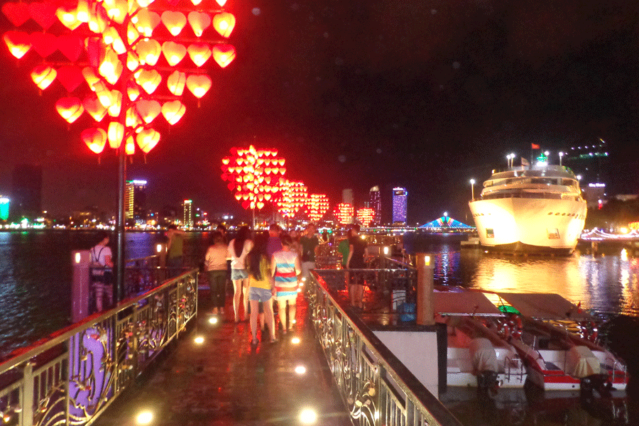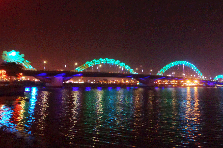 Cầu Rồng với những ánh đèn lấp lánh đủ màu sắc sẽ là một địa điểm đi chơi đẹp tuyệt vời ở Đà Nẵng vào buổi tối.