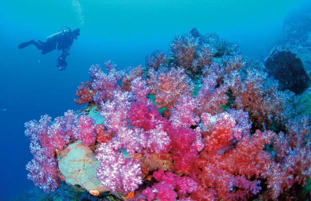 Rặng san hô Ribbon số 3 (Queensland) trải dài trên diện tích gần 1.100 hecta, vẫn giữ được vẻ đẹp hoang sơ hiếm có do nằm ở địa điểm biệt lập. Khu vực Steve Bommie tại đây nổi tiếng với sự hiện diện của cá nhồng, cá dơi và cá voi Minke từ tháng 6 đến tháng 8 hằng năm. Các hoạt động lặn và chèo thuyền là lựa chọn của phần lớn khách du lịch. Ảnh: Australia Geographic.