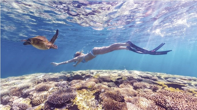 Công viên quốc gia đảo Green nằm ngoài khơi thành phố Cairns là điểm du lịch ngắm san hô nổi tiếng với gần 200 loài san hô cứng và hơn 100 loài san hô mềm. Ảnh: Greenislandcairns