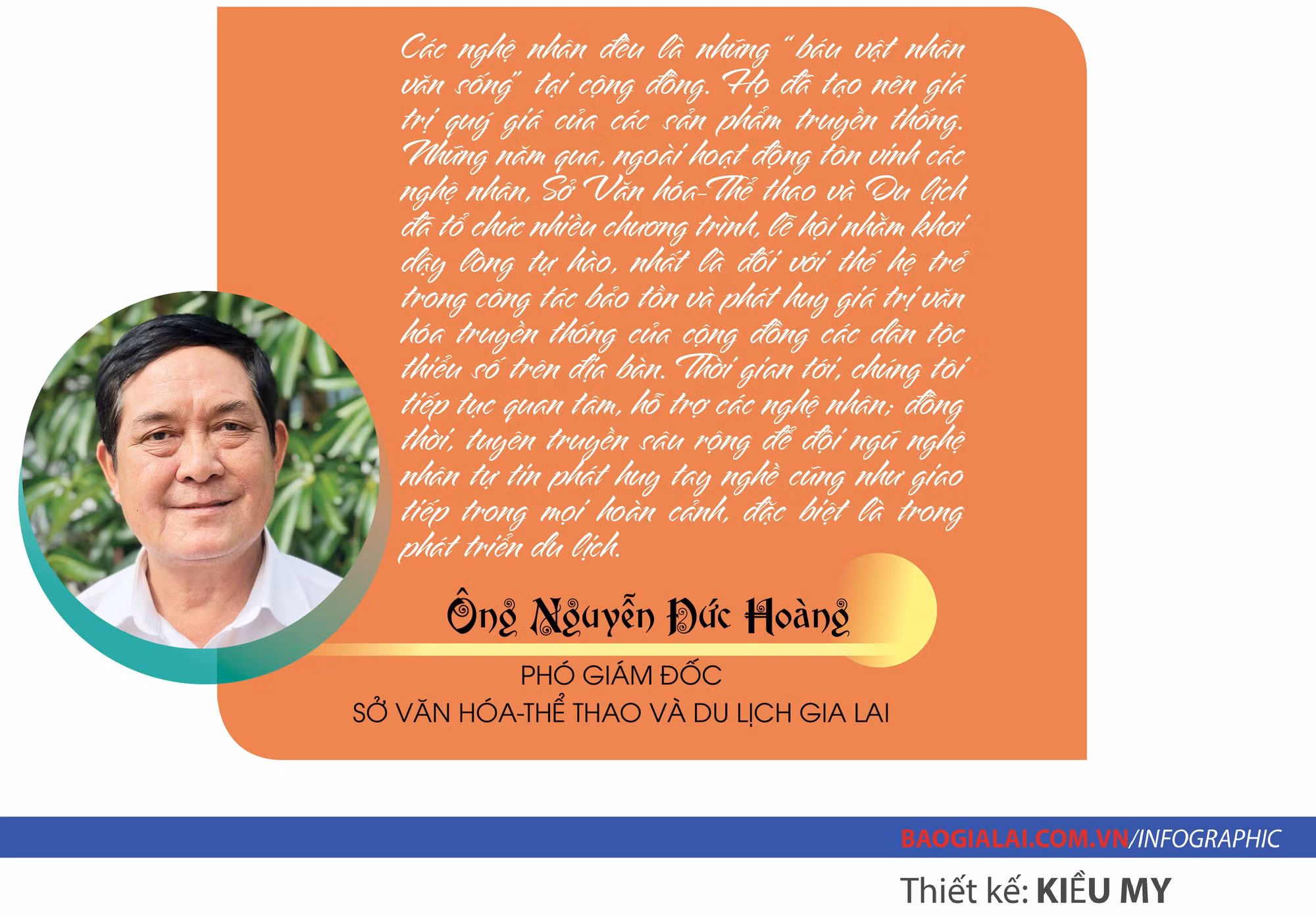 Với sự nỗ lực sáng tạo của mình, nhiều năm qua, ông Lơl đã tạo ra hàng trăm chiếc gùi có nắp đủ loại và trở thành nghệ nhân tài hoa của làng. Theo thời gian, chiếc gùi có nắp như một sản phẩm độc quyền của làng Hlang Ngol, gắn bó với bà con như máu thịt, truyền đời và cũng là một nét văn hóa độc đáo cần lưu giữ.