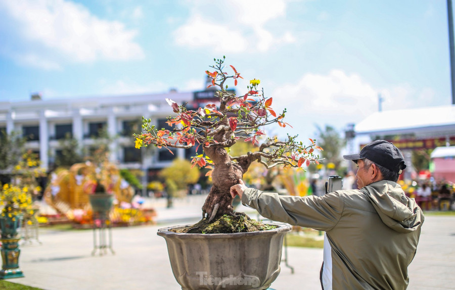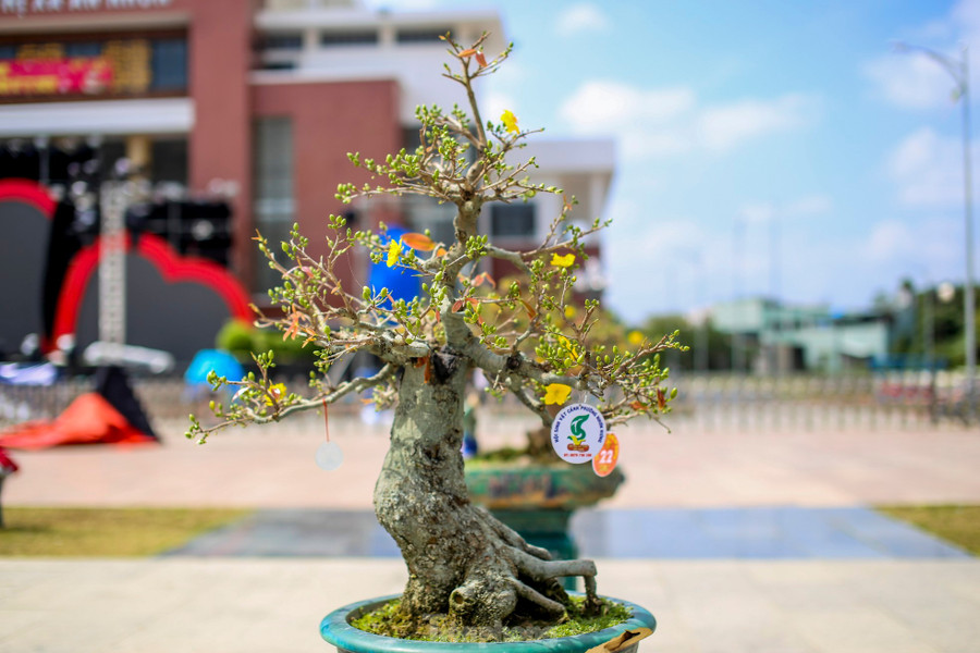 Những tác phẩm mai vàng cổ thụ, dáng thế độc lạ có giá trị kinh tế cao. Ảnh: Trương Định Mai vàng, một biểu tượng của mùa xuân miền Trung, loài hoa quen thuộc với mỗi dịp Tết đến Xuân về và cũng là đặc sản văn hóa của thị xã An Nhơn. Ảnh: Trương Định Người dân livestream giới thiệu những tác phẩm mai bonsai. Ảnh: Trương Định Chương trình lễ hội mai vàng sẽ được khai mạc vào tối nay (6/2) tại Quảng trường Trung tâm văn hóa thị xã An Nhơn. Ảnh: Trương Định