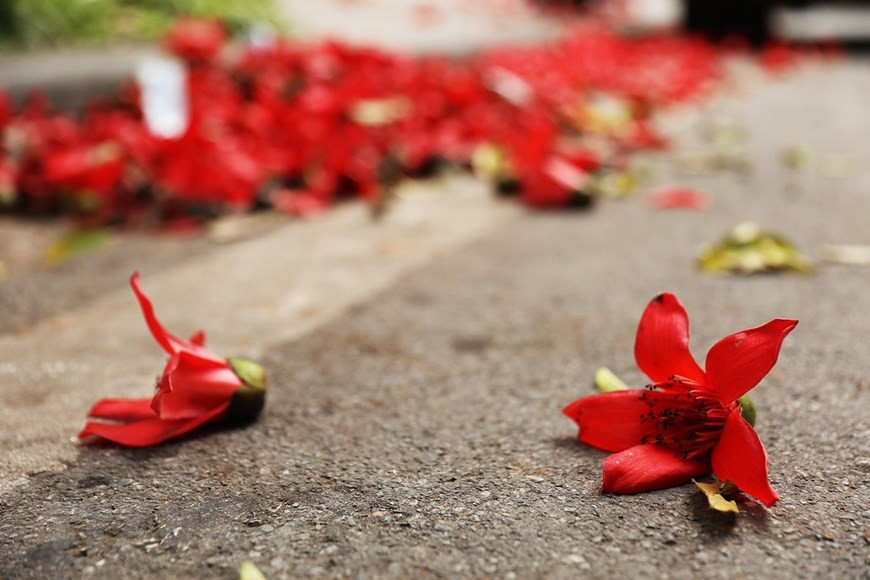 | Vào mỗi độ ra hoa, vẻ đẹp của hoa gạo như những đốm lửa nhỏ rực cháy bên Hồ Hoàn Kiếm luôn thu hút sự chú ý của nhiều người. Ảnh: Phạm Hậu/TTXVN |
