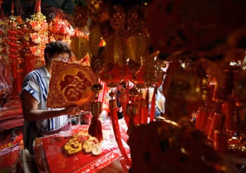 Những món đồ trang trí tết được bày bán ở Bangkok, Thái Lan.