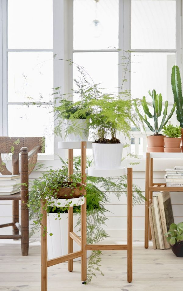Lấy cảm hứng từ phong cách tự nhiên của núi rừng, bộ sản phẩm 3 tầng được thiết kế theo 3 hướng khác nhau của IKEA rất phù hợp để trồng cây trong phòng khách.