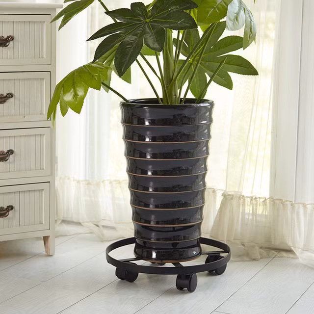 Chậu trồng cây bằng kim loại được thiết kế bánh xe dưới đế rất tiện để di chuyển, giúp chủ nhà có thể thay đổi vị trí của cây tùy theo mục đích trang trí nhà.